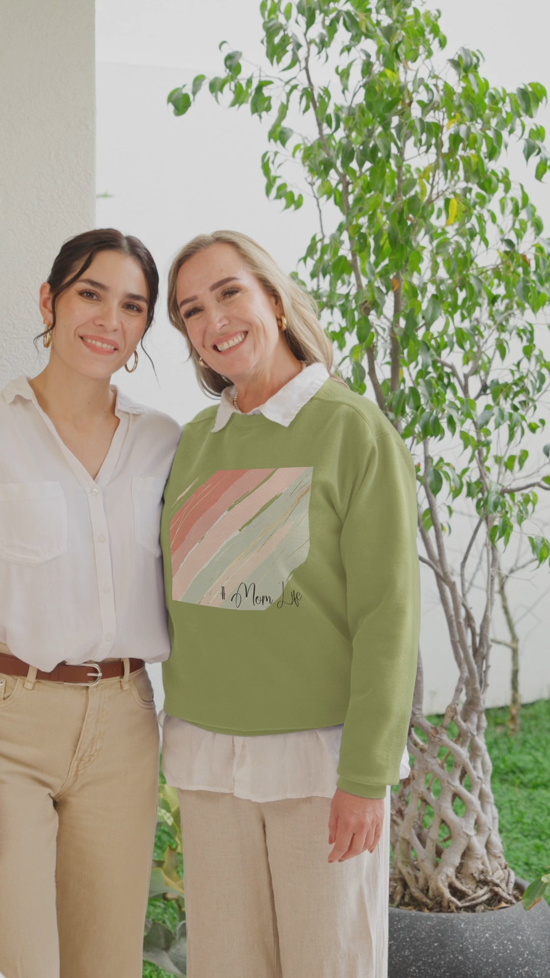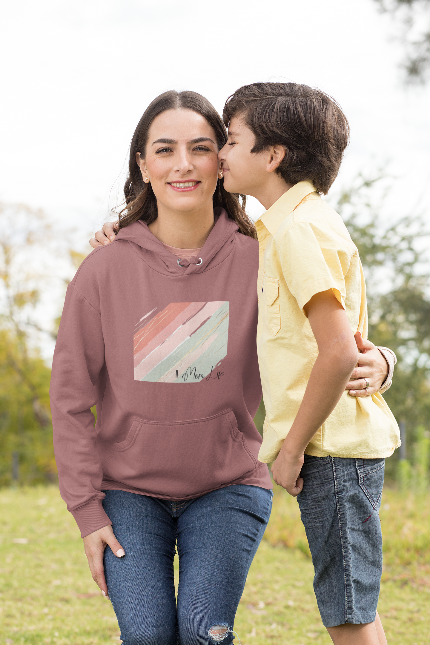 Product Description: "Experience the perfect blend of style and comfort with our Mom Life Premium Hoodie, the newest addition to Paisley's Signature Collection. Each hoodie features our exclusive diagonal stripe design incorporating our signature dusty rose and sage green palette, perfect for the modern mom who values both style and comfort.